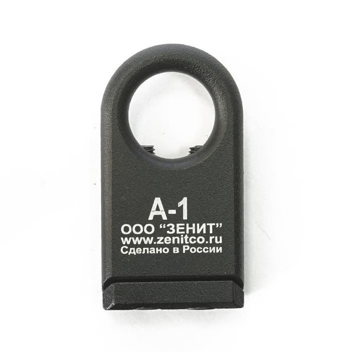 Антабка "А-1" является фрезерованным изделием из сплава Д16Т с покрытием черного цвета или цвета пустыня, с креплением на планку Пикатинни с помощью прижимной планки и двух винтов.