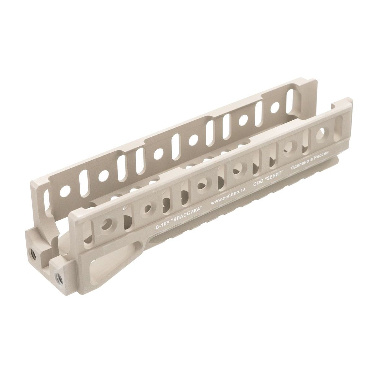 Кронштейн «Цевьё Б-10У» – цельнофрезерованное изделие из сплава алюминия Д16Т с покрытием черного цвета (или цвета «пустыня»).