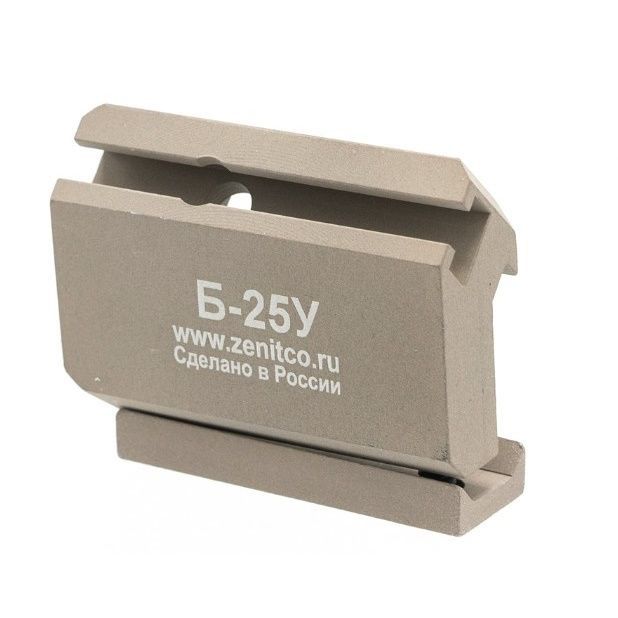 Монтируется на планку Пикатинни с помощью прижимной планки и двух винтов.