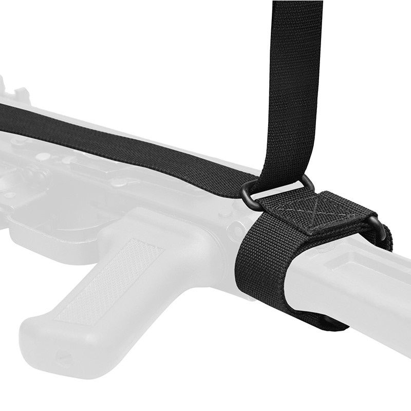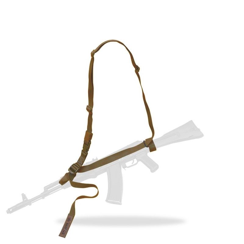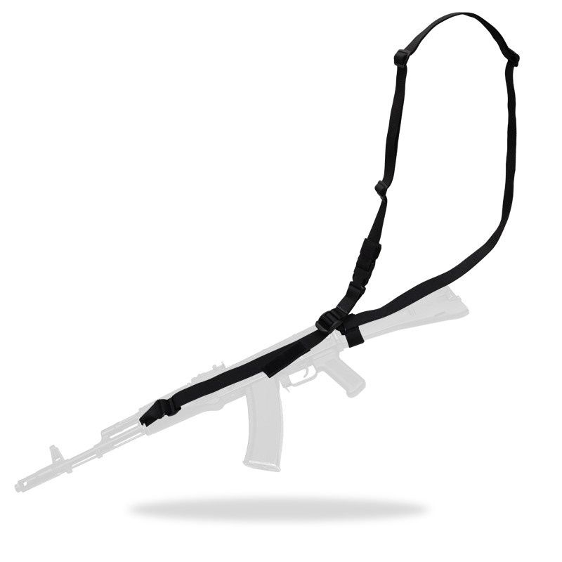 Ремень представляет собой сочетание преимуществ трехточечной и одноточечной оружейных ременных систем, исключая при этом их недостатки.