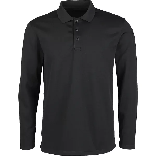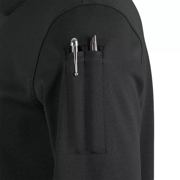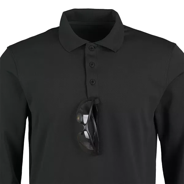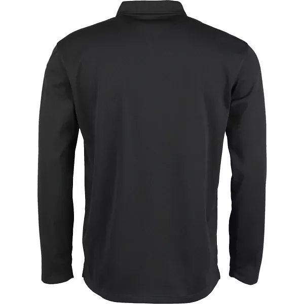 Современная модель поло с длинным рукавом из практичного синтетического легкоутепленного трикотажа (с микроначесом на изнанке).