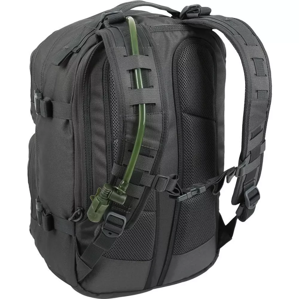 Совместимость с питьевыми системами — в спине имеется отделение с внешним доступом на молнии для 3л гидратора, и две петли на липучках для подвеса. Трубка гидратора выводится внутрь главного отделения через отверстие, а оттуда наружу через специальный клапан сверху ранца. Питьевая система в комплект не входит!