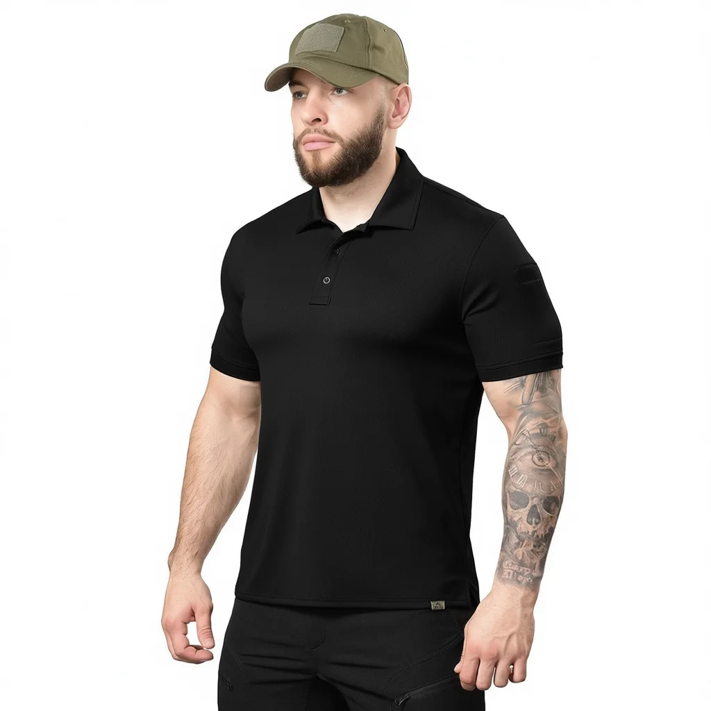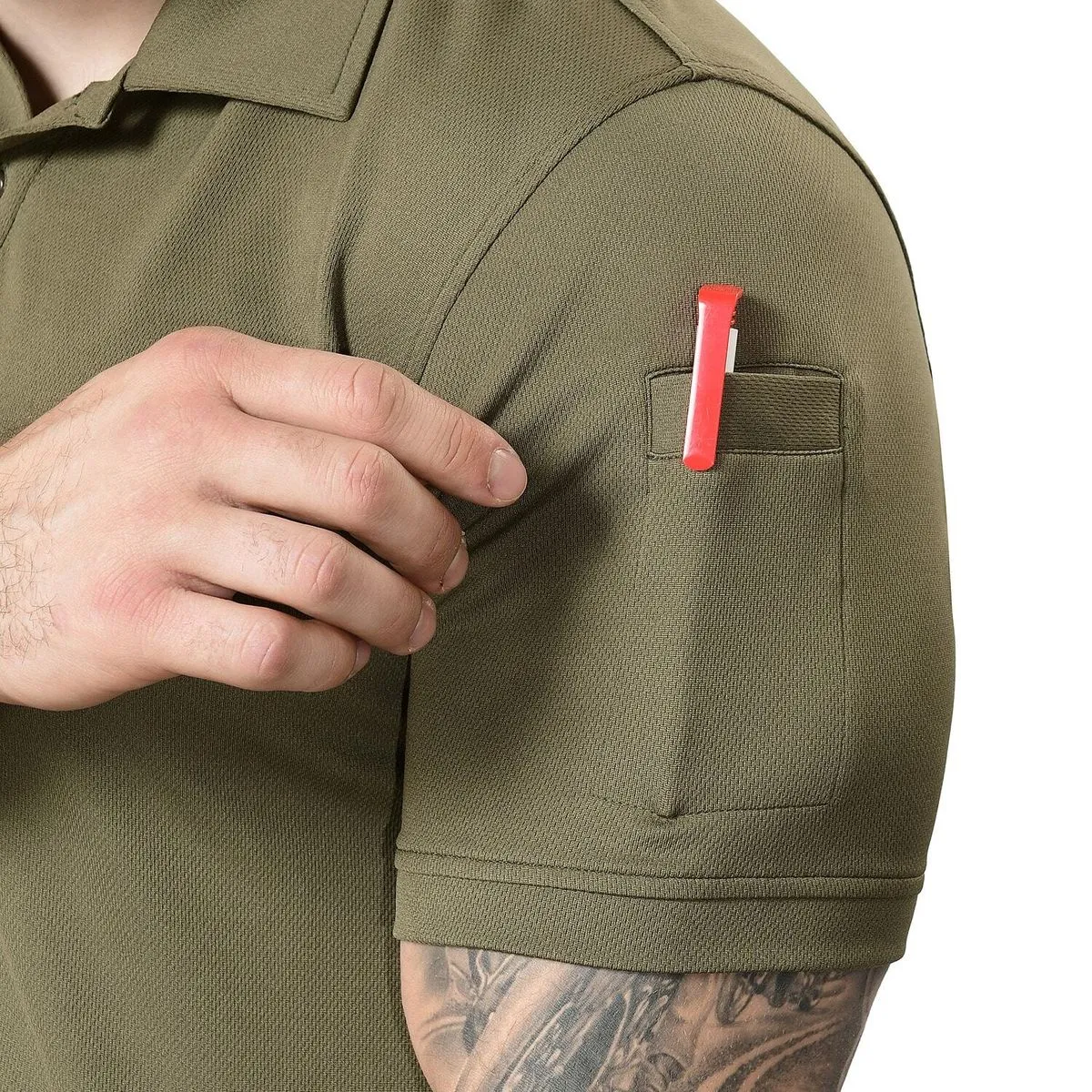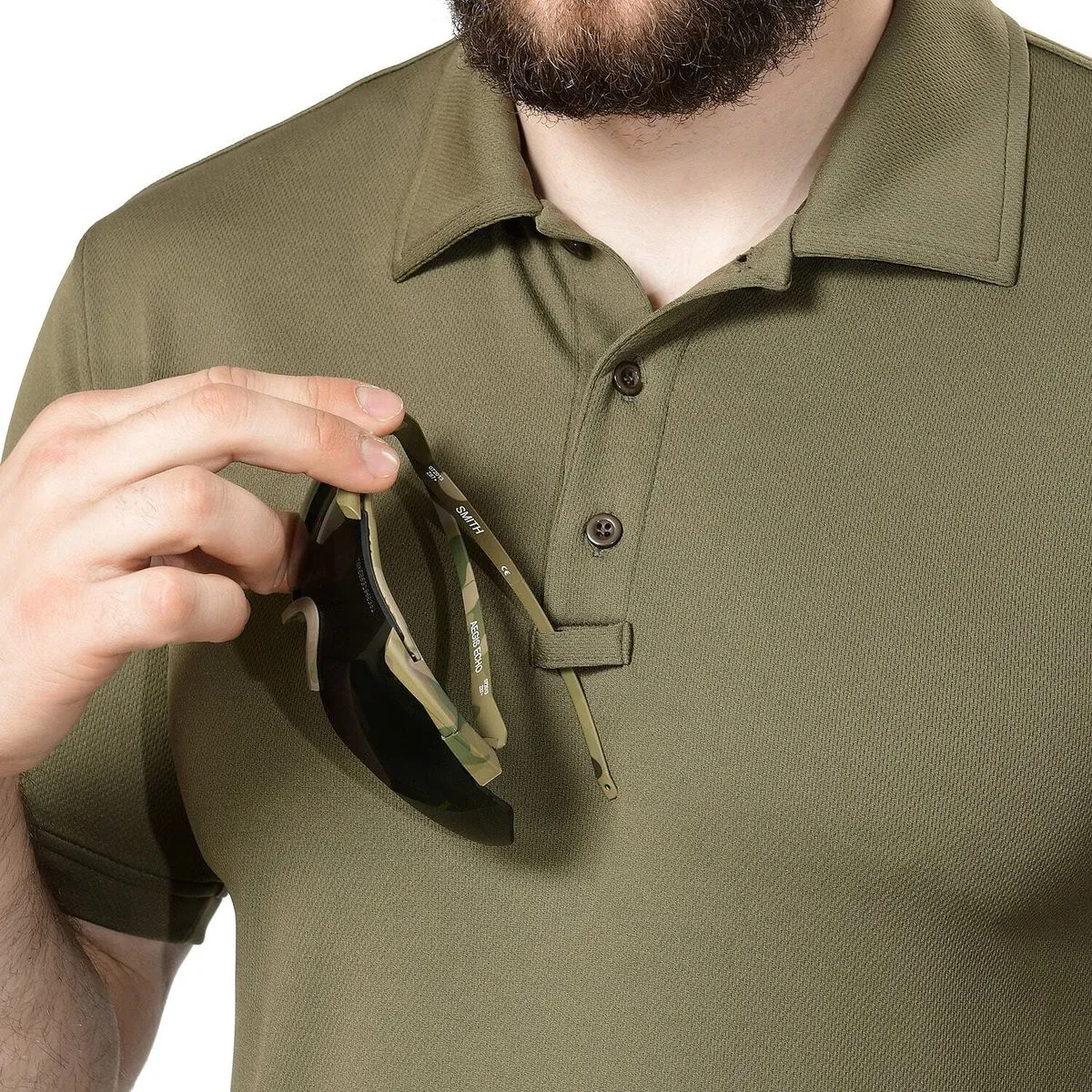 Практичные детали, такие как карман на рукаве и специальная петля на воротнике для аксессуаров, делают это поло идеальным выбором для профессионалов и любителей тактического стиля.