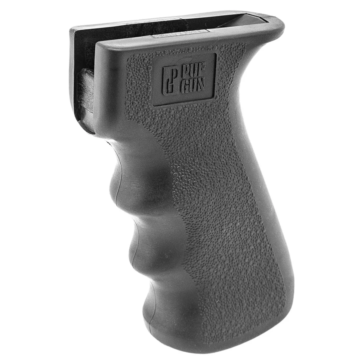 Эргономичная конструкция, позволяет прочно удерживать оружие. Рельефный выступ в передней части обеспечивает удобное положение указательного пальца, относительно спускового крючка.