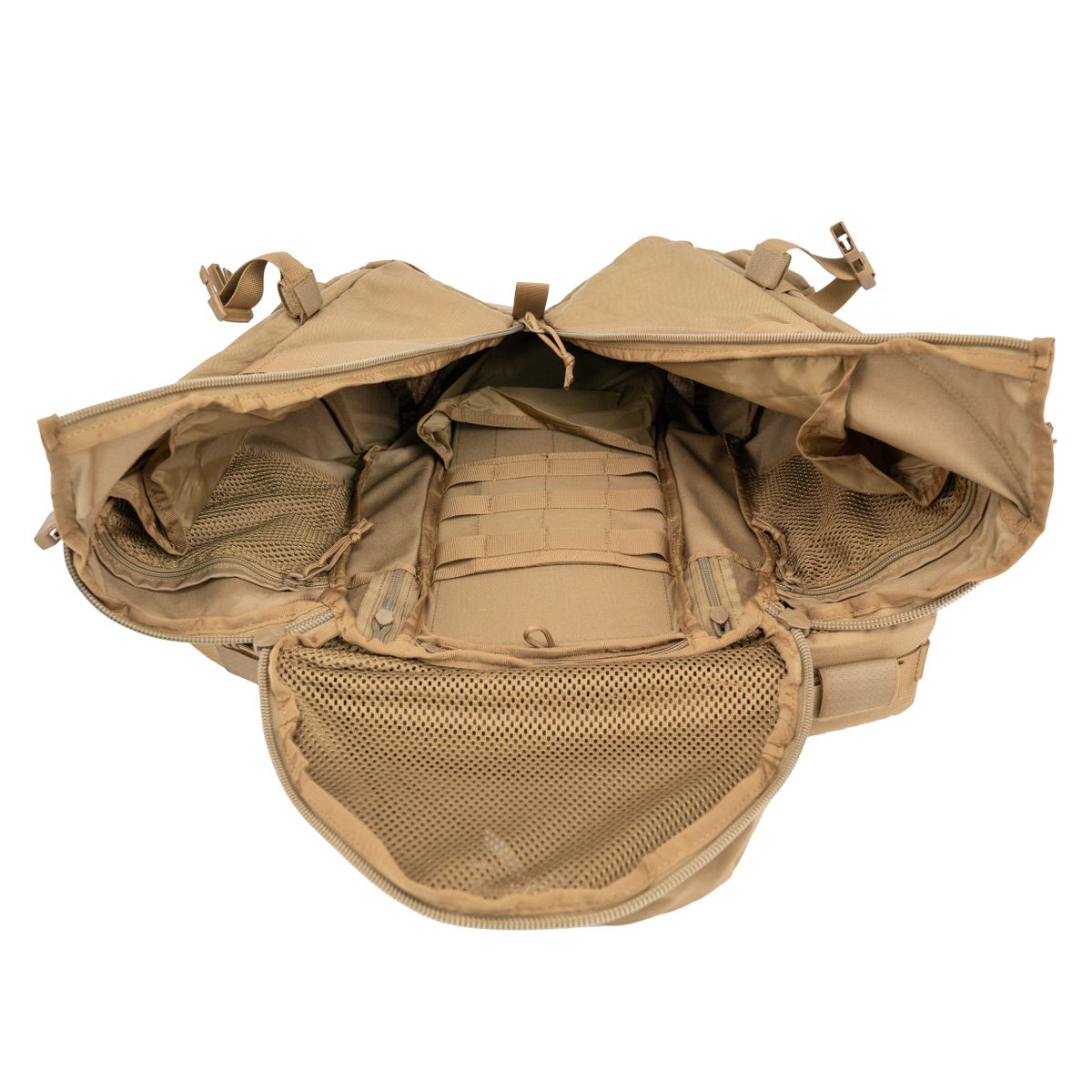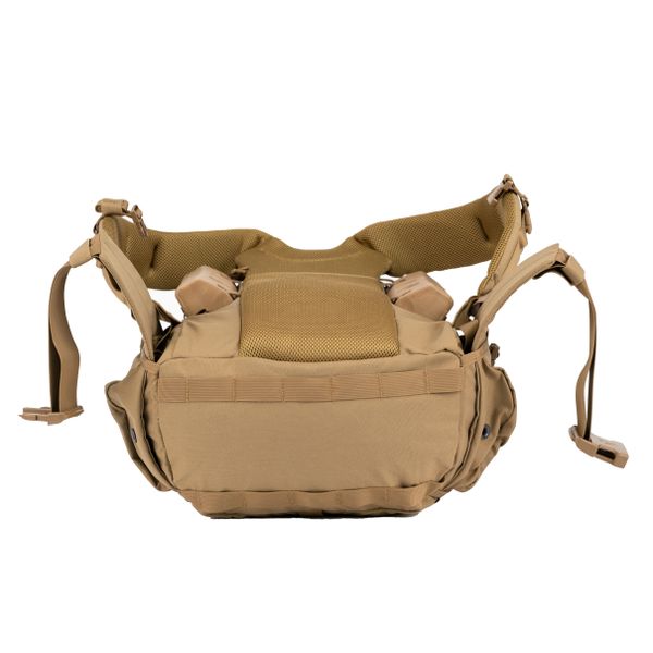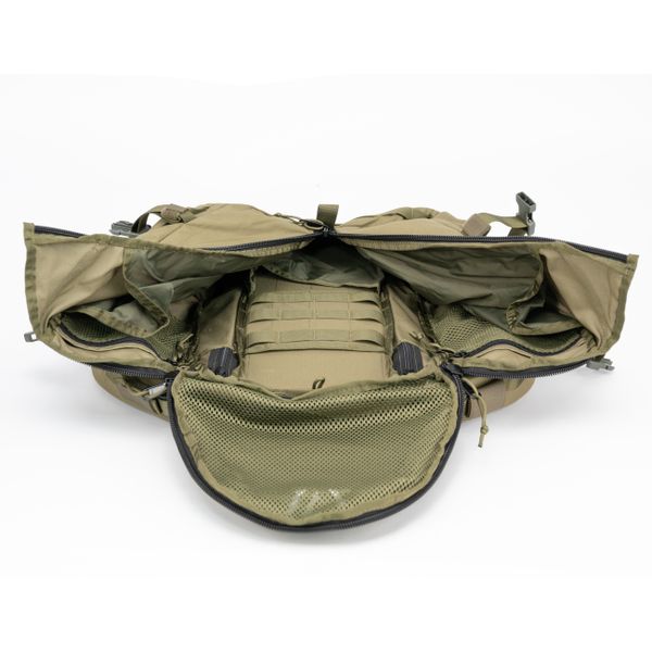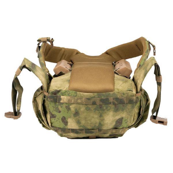 Внутри оснащен двумя сетчатыми отсеками под гидраторы и панелью MOLLE для рации/средств связи.