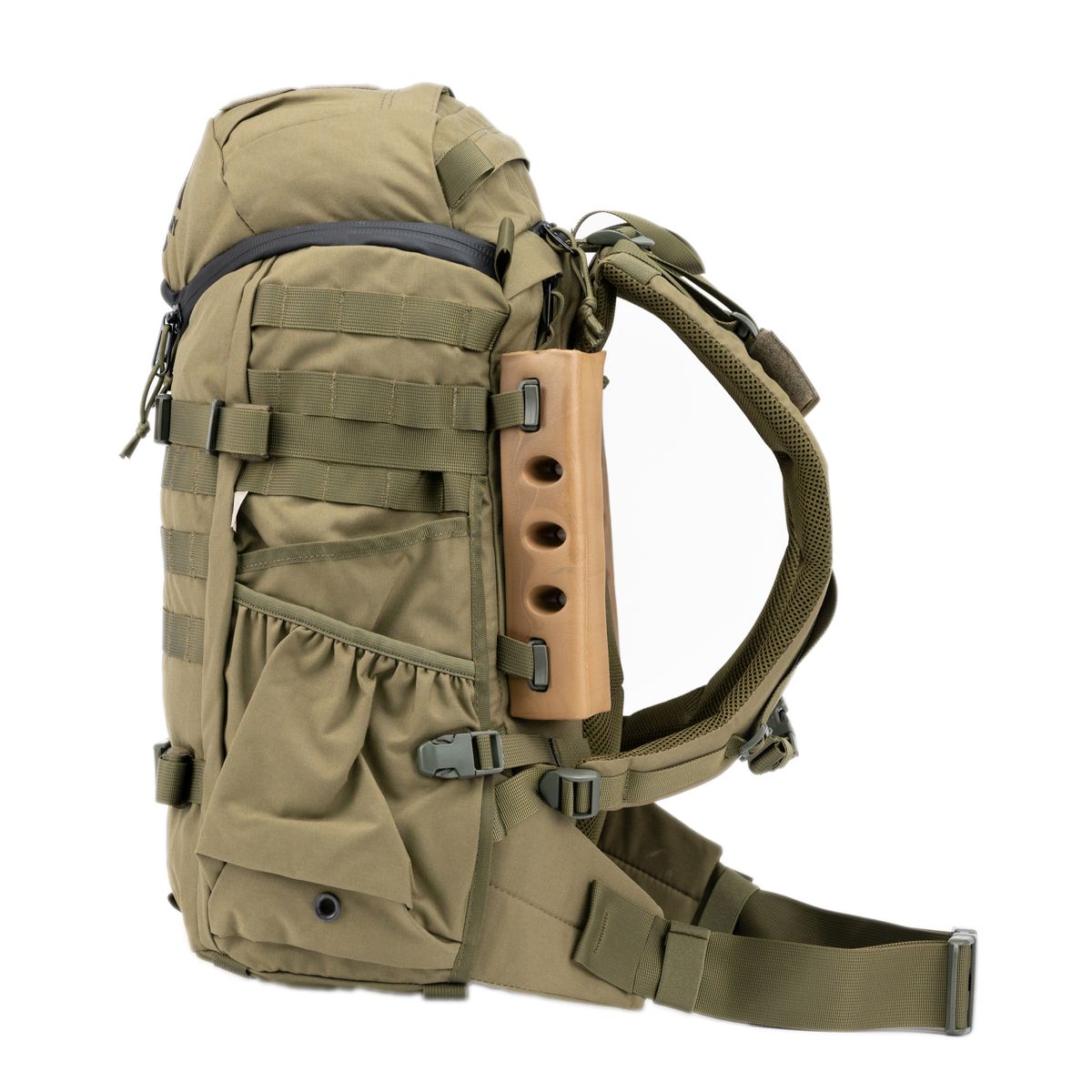 Эта система была разработана, чтобы сделать рюкзак стабильнее при ношении с бронежилетом. Съемные поддерживающие части изготовлены из литого материала EVA, который обладает невероятной прочностью и позволяет рюкзаку быть оптимизированным для любых операций.